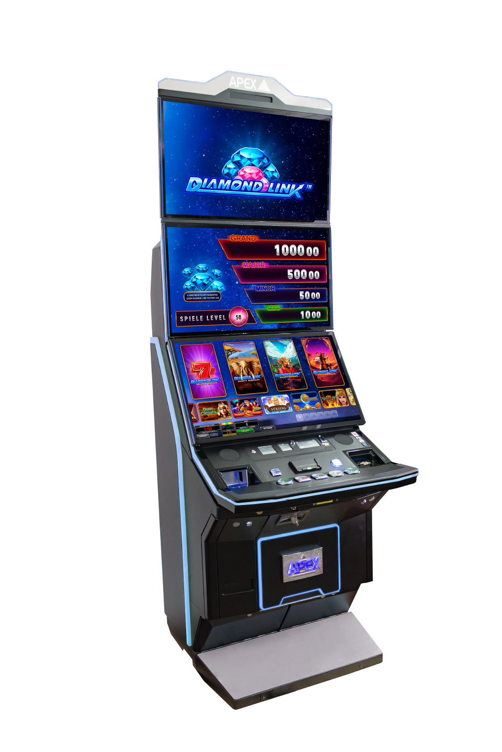 Apex SL32 ist das neueste Produkt im Segment hochwertiger Slant Top Geldspielgeräte und unterstreicht sein Casinoflair durch drei 32“ Monitore.